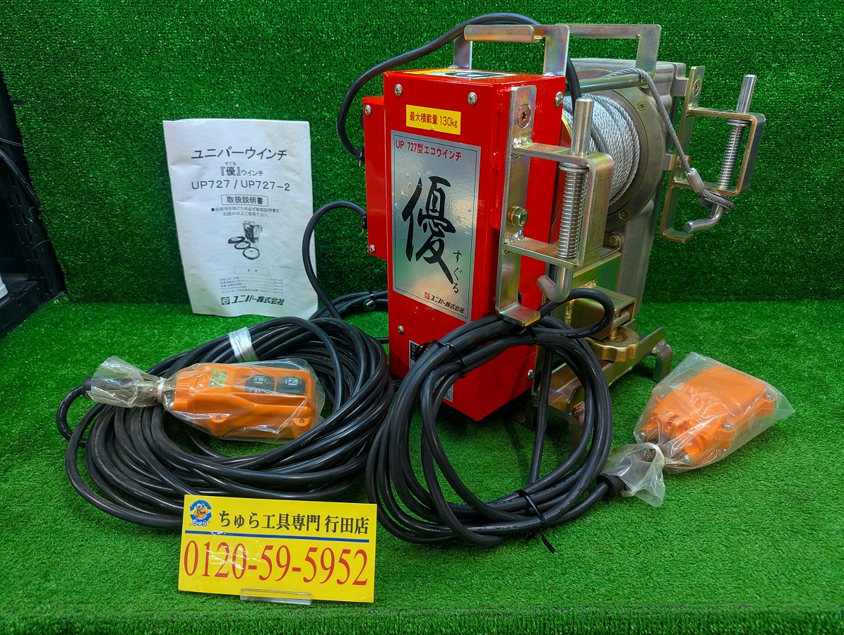 HOME > その他 > ちゅら工具専門行田店 エンジン工具・農機具専門館にて 未使用品 ユニパー 130kg 電動エコウインチ 「優」 UP727 を買い取りさせて頂きましたので紹介します。