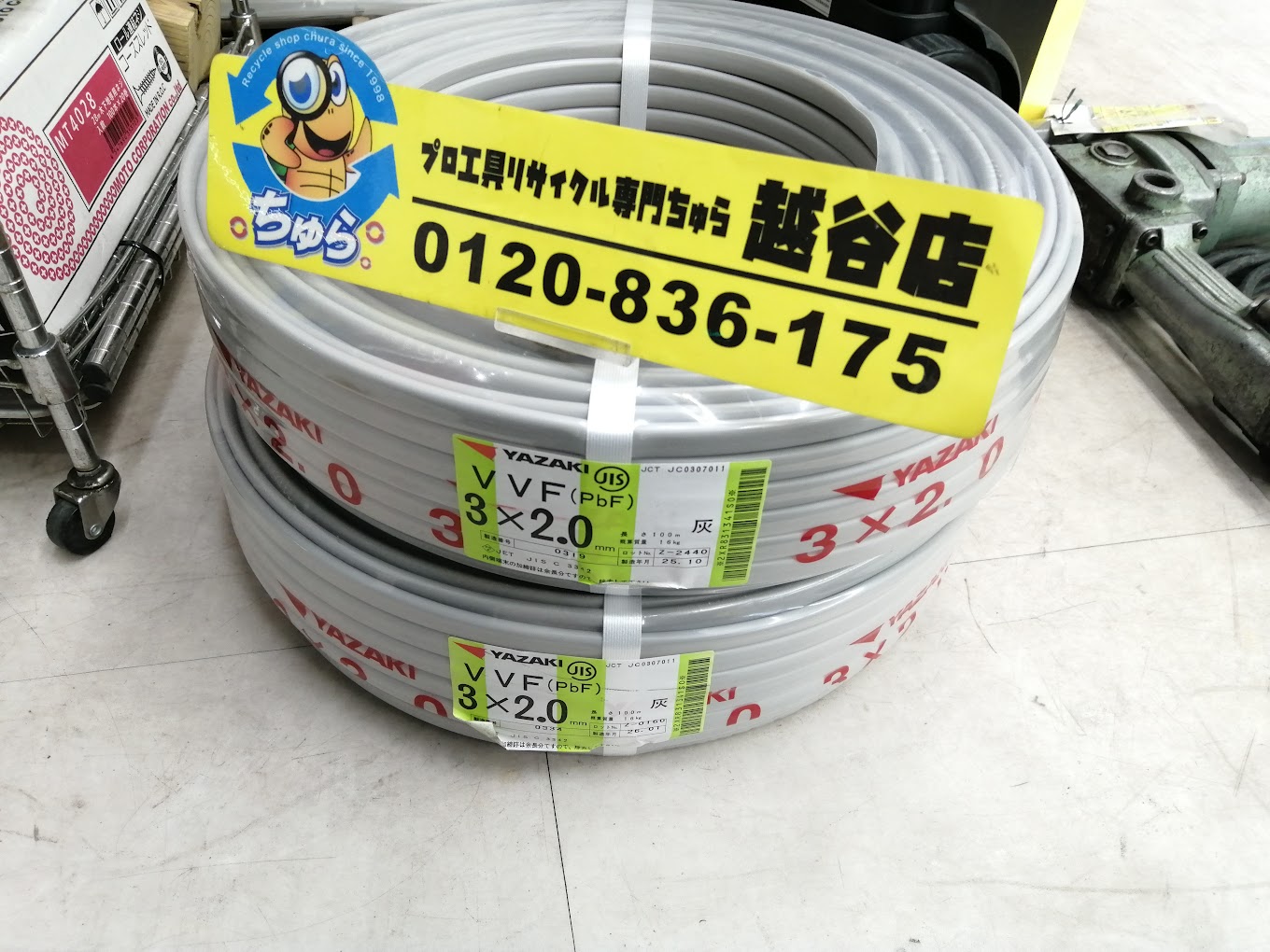 HOME > その他 > ちゅら工具越谷店にて未使用 VVFケーブル 3×2.0 を買取させて頂きました!