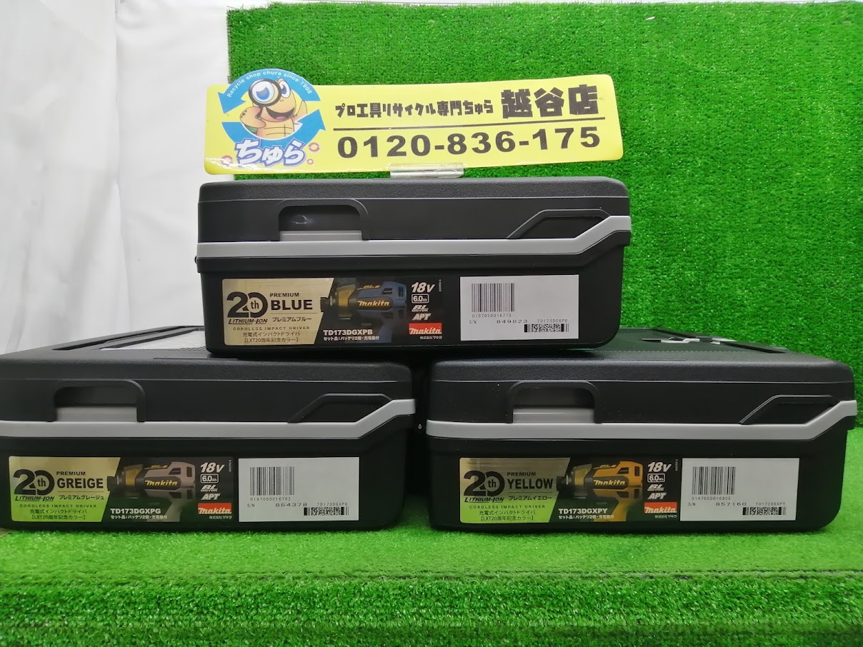 HOME > マキタ > ちゅら工具越谷店にて未使用 makita 20周年記念モデル 18V インパクトドライバセット TD173DGXPB/Y/Gを買取させて頂きました!