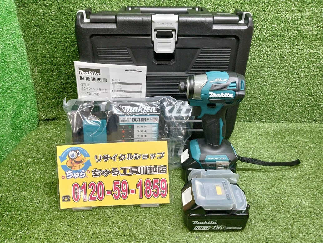 ちゅら工具川越店にて 未使用 makita 18V充電式インパクトドライバ 18Vバッテリー×2 充電器×1 TD173DRGX を買取させて頂きました。