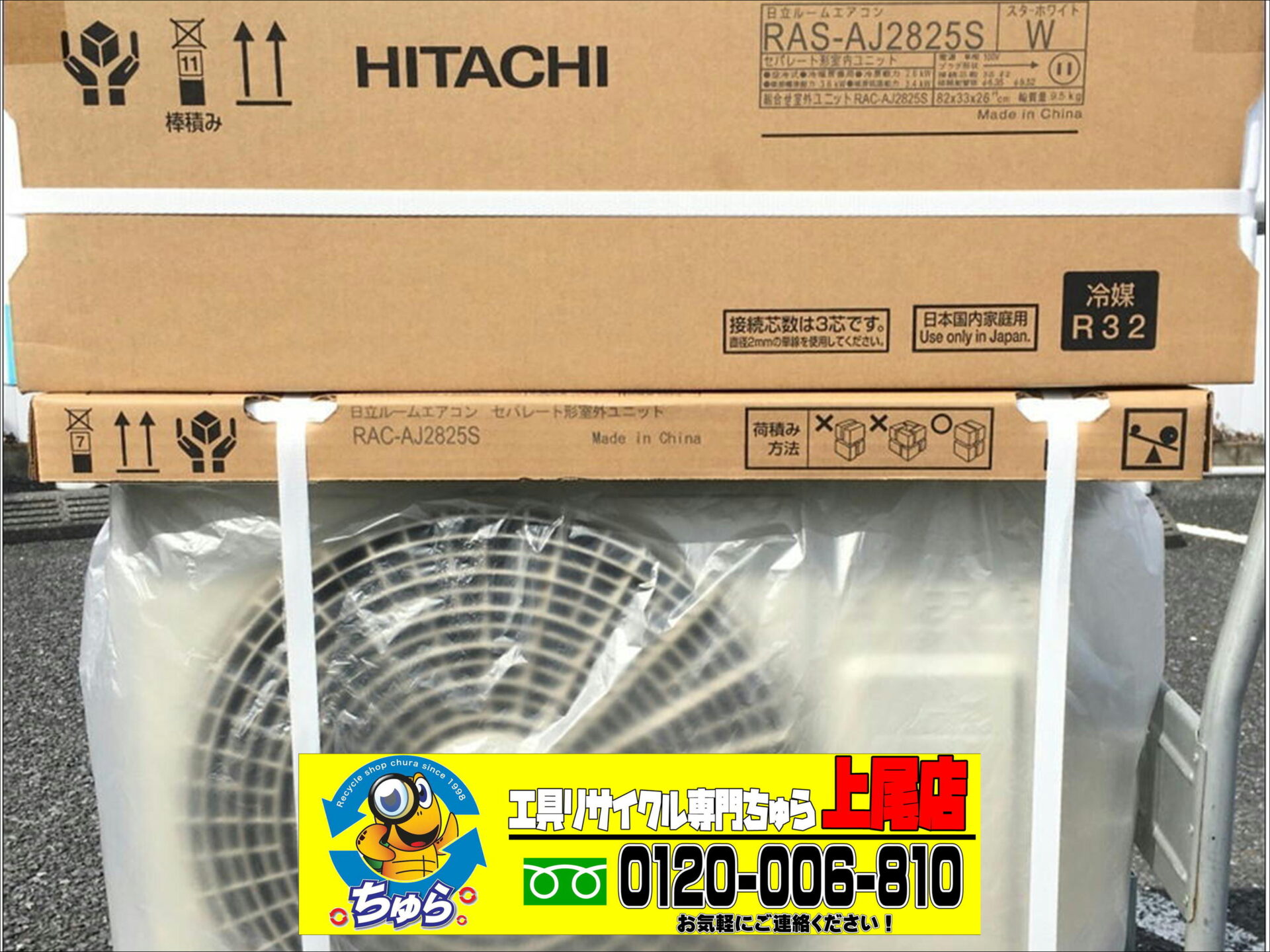HOME > その他 > ちゅら工具上尾店にて未使用品 HITACHI 100V 10畳用 ルームエアコン 白くまくん RAS-AJ2825S + RAC-AJ2825Sを買取させて頂きました。